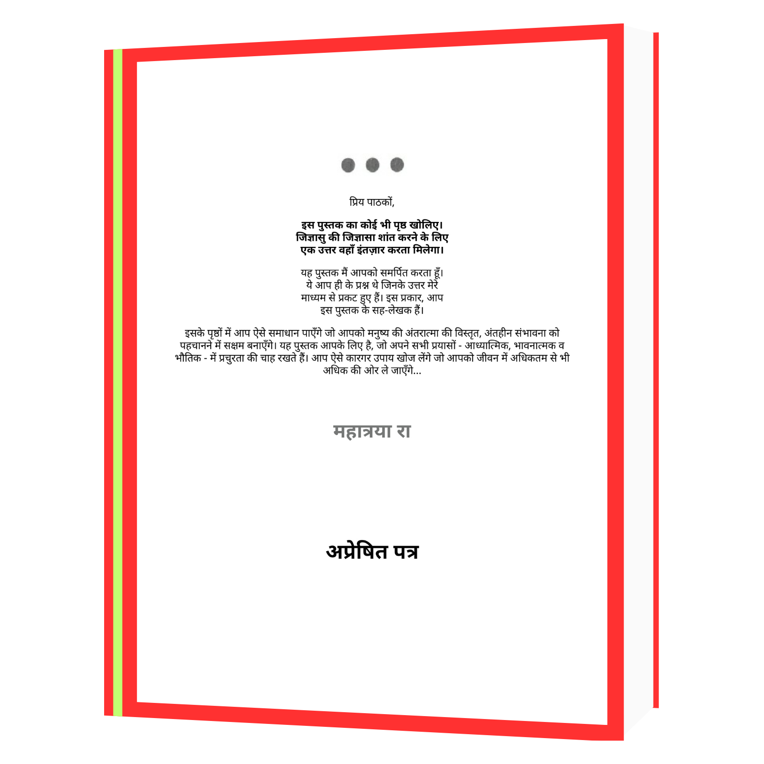 “अप्रेषित पत्र” उन भावनाओं का संग्रह है जो लिखी तो गईं, पर कभी भेजी नहीं जा सकीं। यह किताब प्रेम, पीड़ा, पछतावे, उम्मीद और आत्मचिंतन के पत्रों के माध्यम से मानवीय संवेदनाओं की गहराई को उजागर करती है। हर पत्र एक कहानी है—कभी आपकी, कभी किसी और की—लेकिन एहसास एक जैसे।