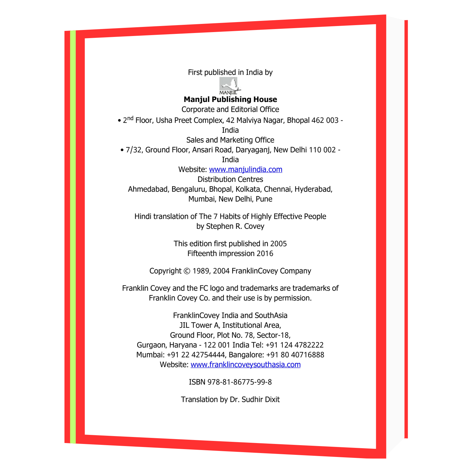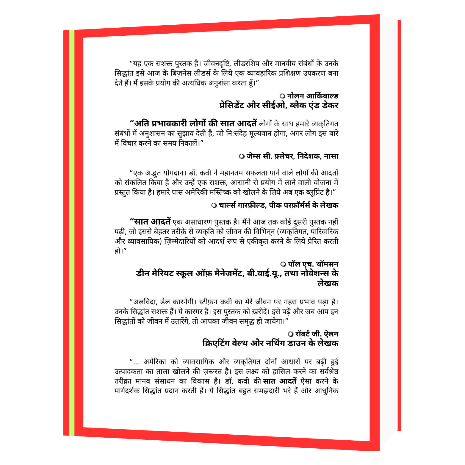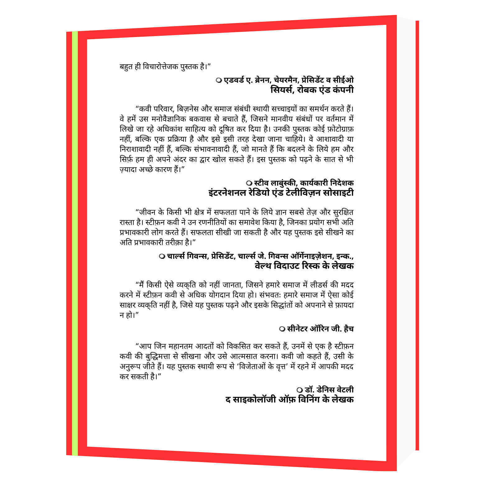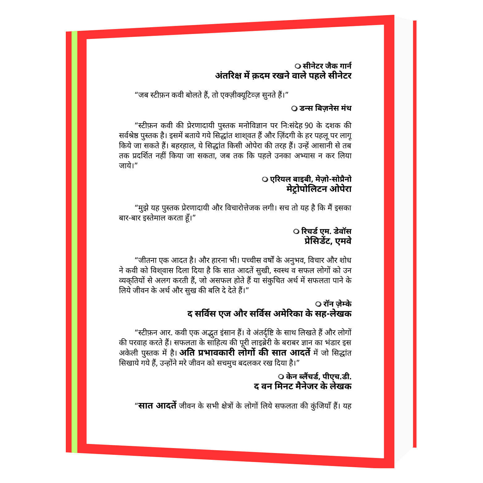 यह किताब आपको सात ऐसी शक्तिशाली आदतों से परिचित कराती है, जो प्रोएक्टिव सोच, स्पष्ट लक्ष्य, समय प्रबंधन, जीत-जीत मानसिकता, टीमवर्क और निरंतर आत्म-विकास को मजबूत बनाती हैं।