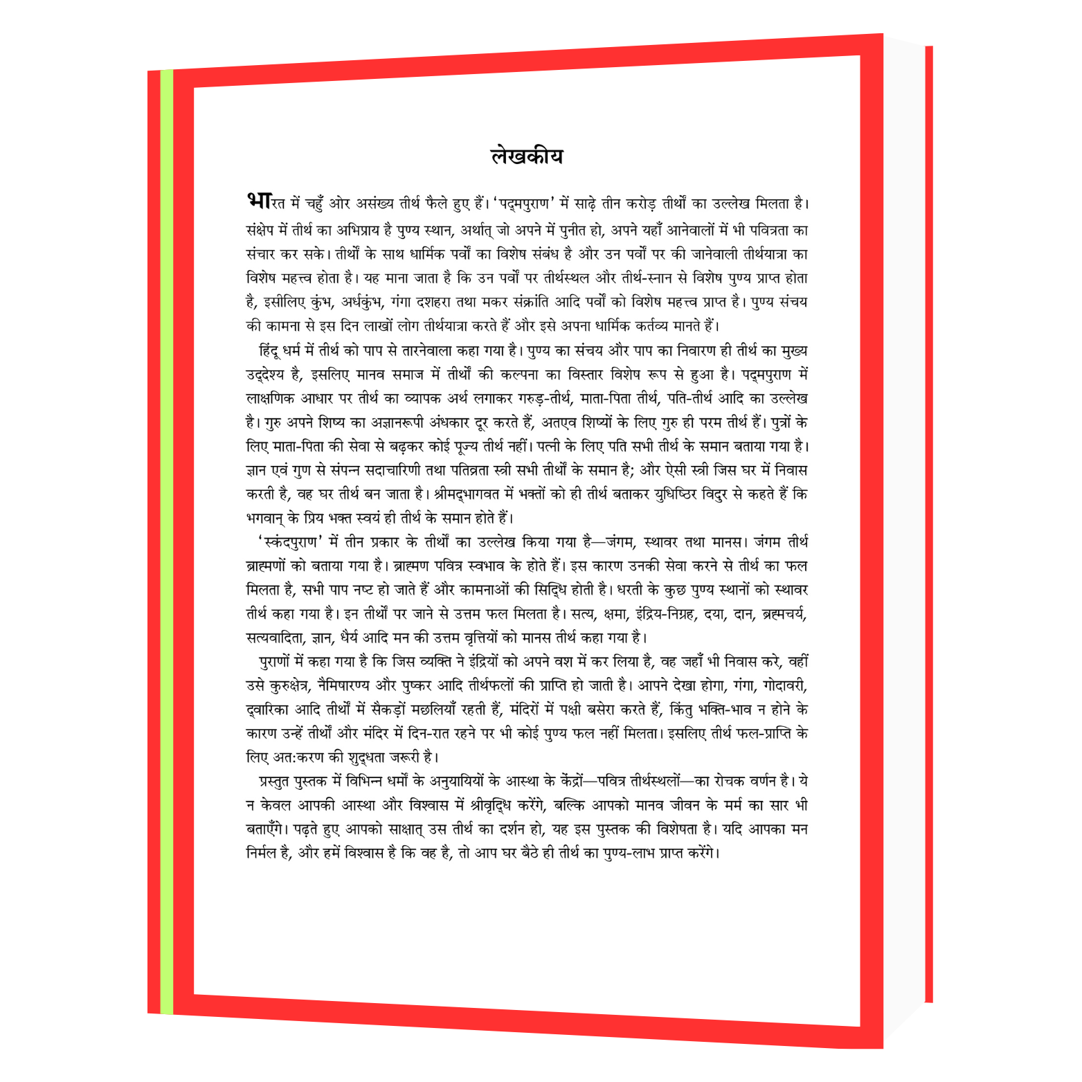 यह पुस्तक पाठक को चार धाम, ज्योतिर्लिंग, शक्तिपीठ, पवित्र नदियाँ