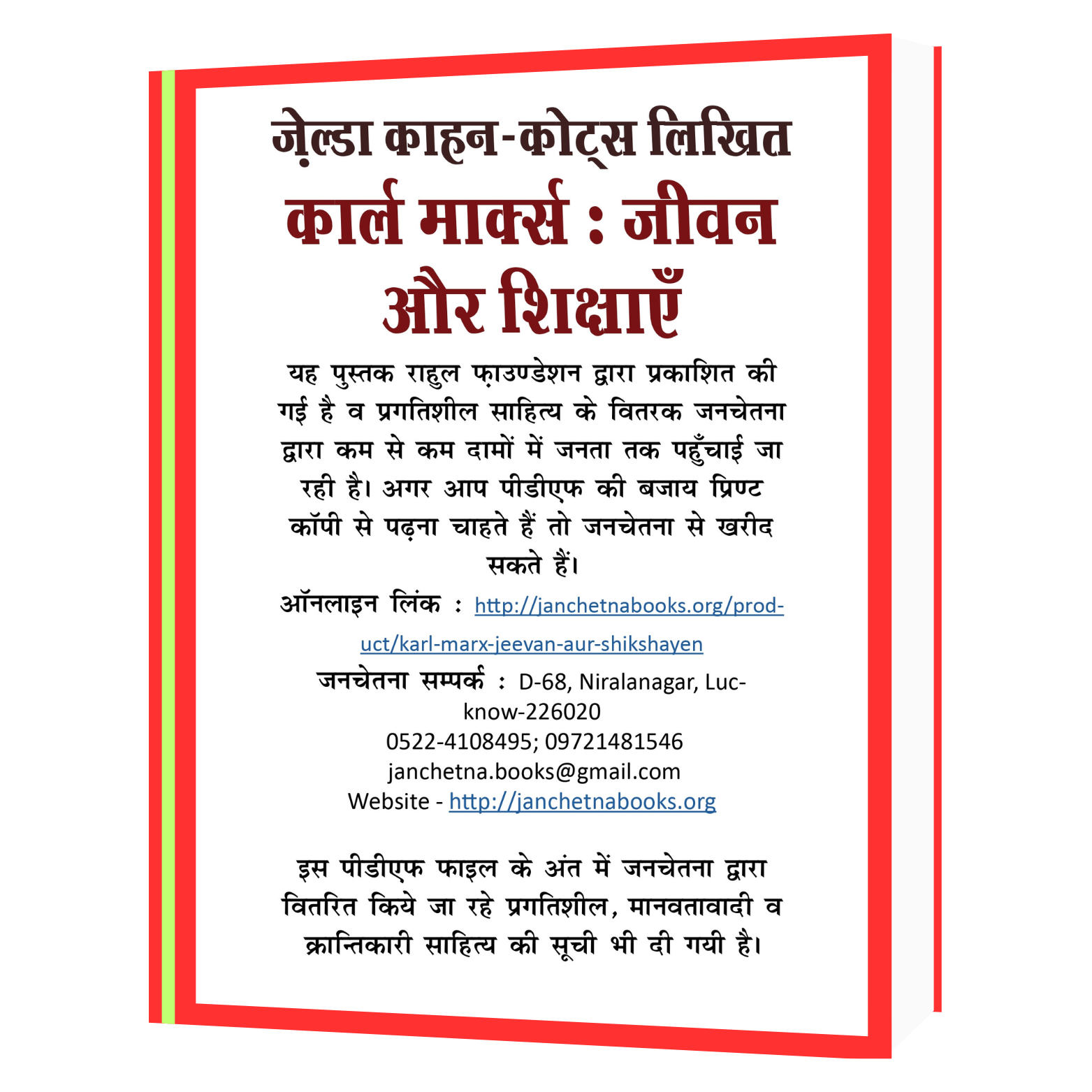 वर्ग-संघर्ष और समाज परिवर्तन की चेतना समझने के लिए उपयोगी पुस्तक।