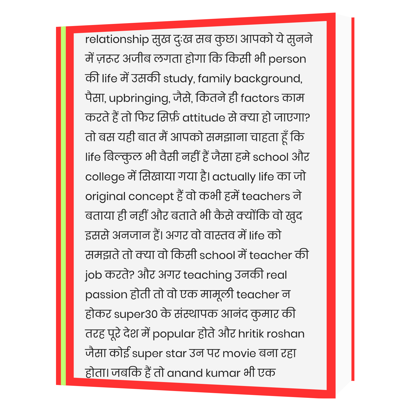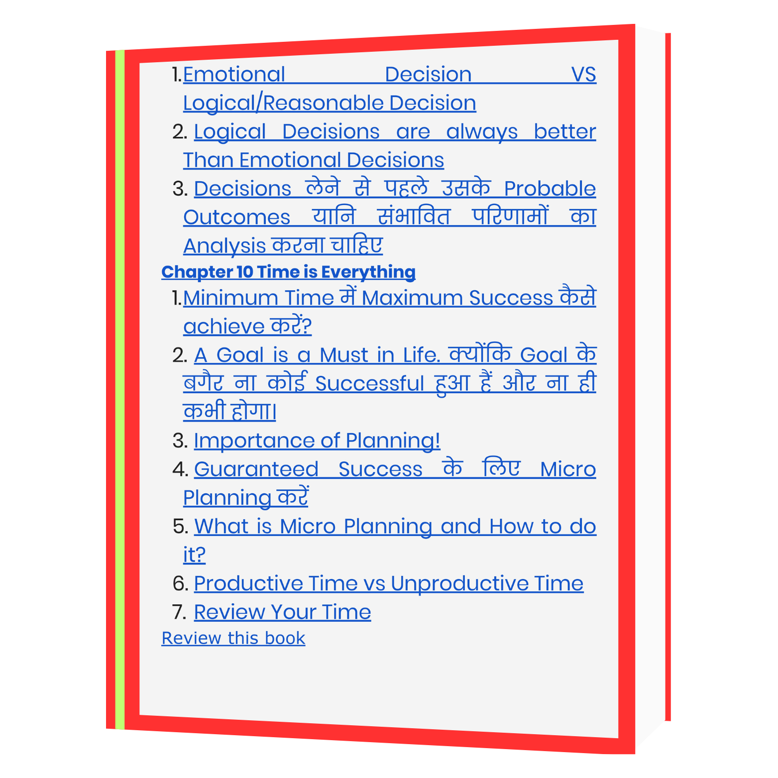 यह पुस्तक जीवन की चुनौतियों, रिश्तों, सफलता, असफलता और आत्मविश्वास से जुड़े